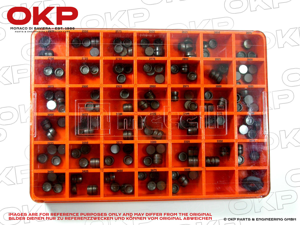 Sortimentskasten VentileinstellplättchenGrößen 2,525 - 3,500mmGesamt 200 Stück.Für alle Twinspark 8V / GTA mit 8mm Ventilen.
