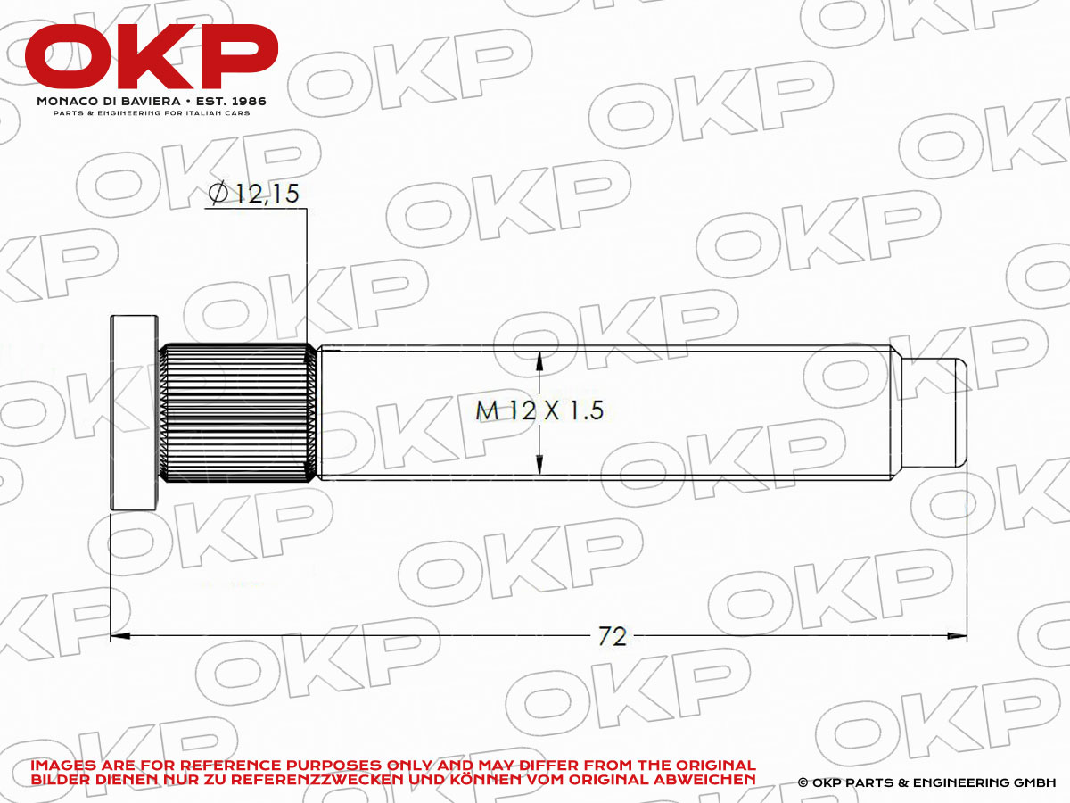 Colonnetta ruota posteriore (filetto destro) 105 / 115 72MM