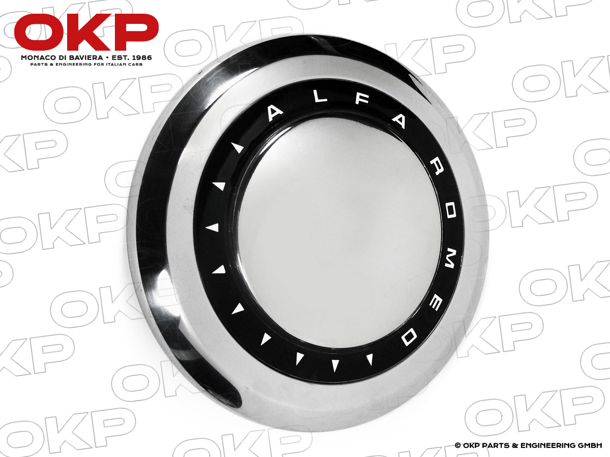 Radkappe original mit grossem schwarzen Ring (Edelstahl INOX)NasenbefestigungAlfa RomeoBertone GT / GTVGiulia 1300 / 1600Spider Berlina