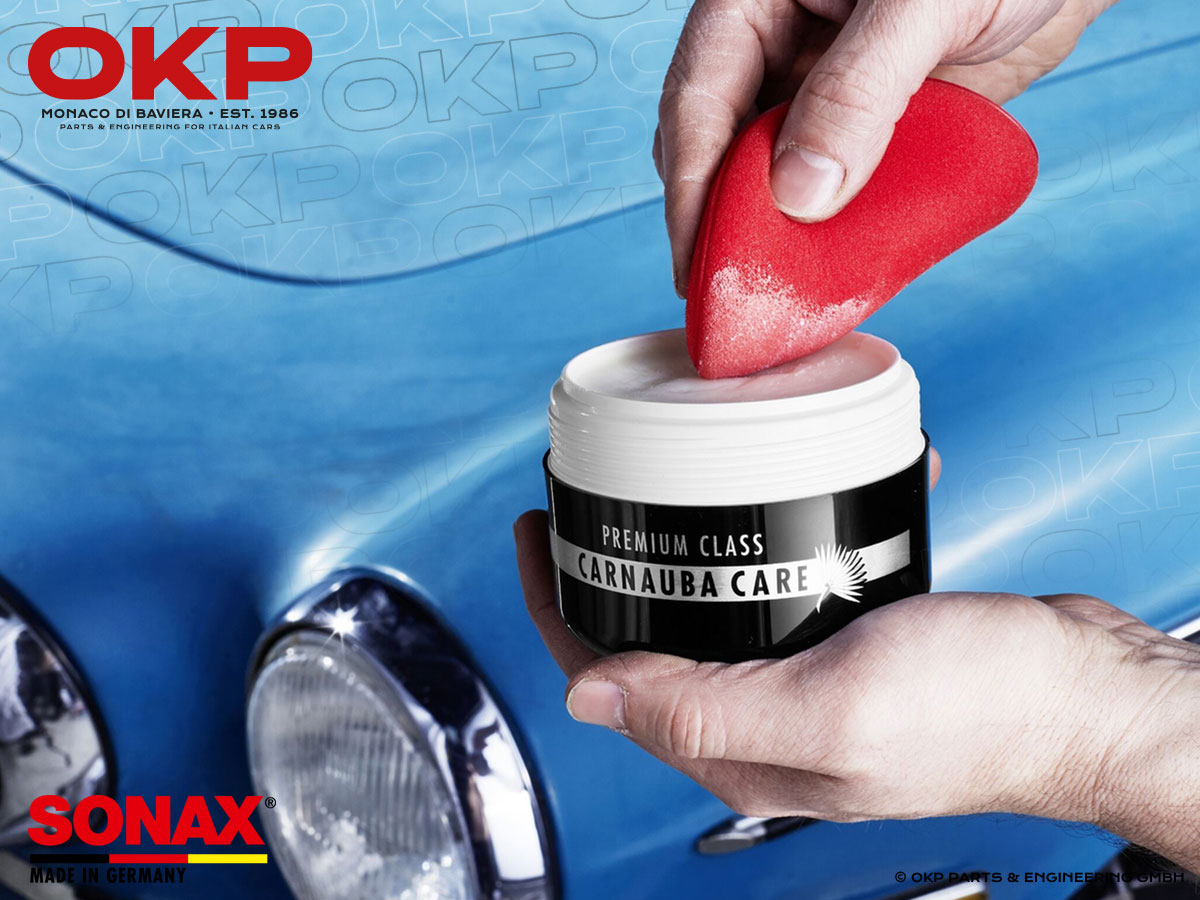 Solid hard wax for all new and thoroughly cleaned paintwork. Contains no abrasives. The wax in SONAX PREMIUM CLASS Carnauba Care consists of 100 % unbleached and ecologically certified grade one carnauba wax. Thanks to its molecular structure, it offers maximum UV protection and thus prevents premature fading of the paintwork. The color stays brilliant for longer and the paintwork is given long-lasting protection. High-quality maintaining oils facilitate easy application. The treated paintwork becomes extremely smooth and is therefore better protected against stubborn insect stains.