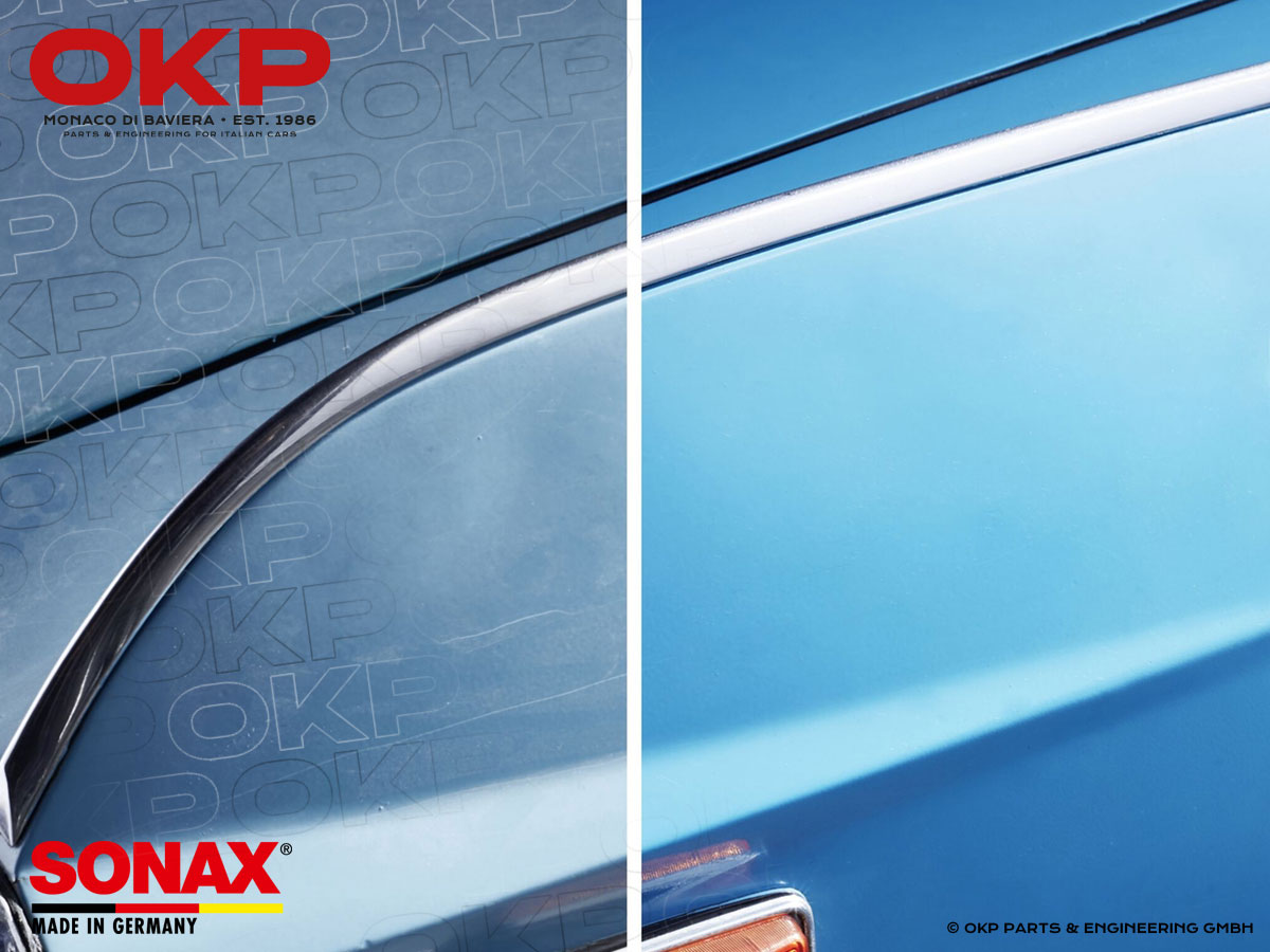 Wash the vehicle thoroughly with plenty of water, shampoo and a sponge and dry without leaving any residue. Apply the wax evenly and very sparingly with the enclosed Sponge Applicator. Allow to dry briefly. Remove residues with the enclosed SONAX Microfibre Cloth.